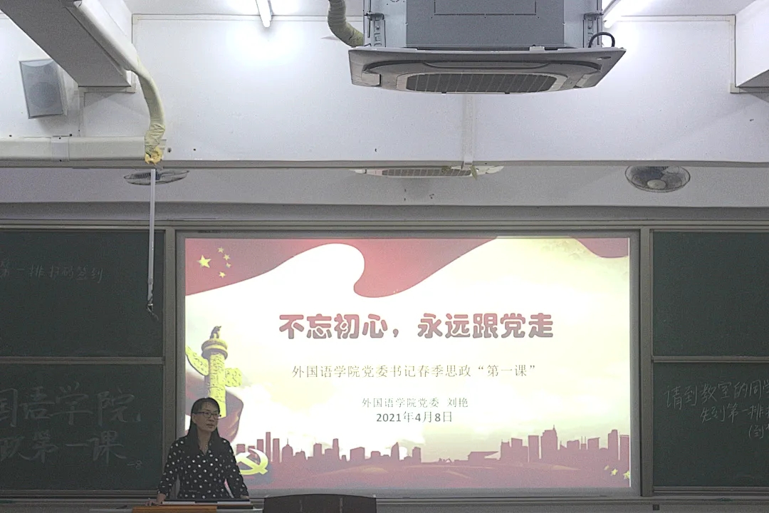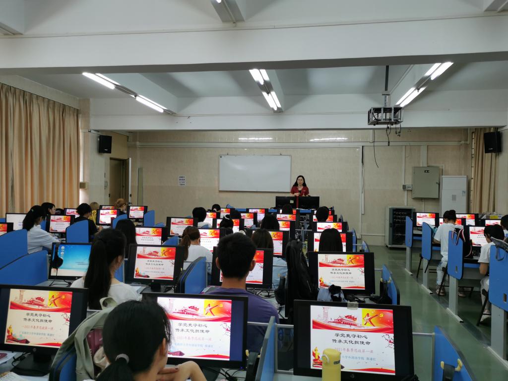 4月8日晚上,WilliamHill威廉正处级辅导员、党委副书记刘艳在钟海楼04024为学院近二百名2019级学生讲授了题为《不忘初心,永远跟党走》的思政第一课。课程紧紧围绕习近平新时代中国特色社会主义思想,引导广大青年学生正确了解党史、国史,增强“四个意识”、坚定“四个自信”、做到“两个维护”,自觉担负起新时代的青年使命,为实现“两个一百年”奋斗目标、实现中华民族伟大复兴的中国梦而努力奋斗。