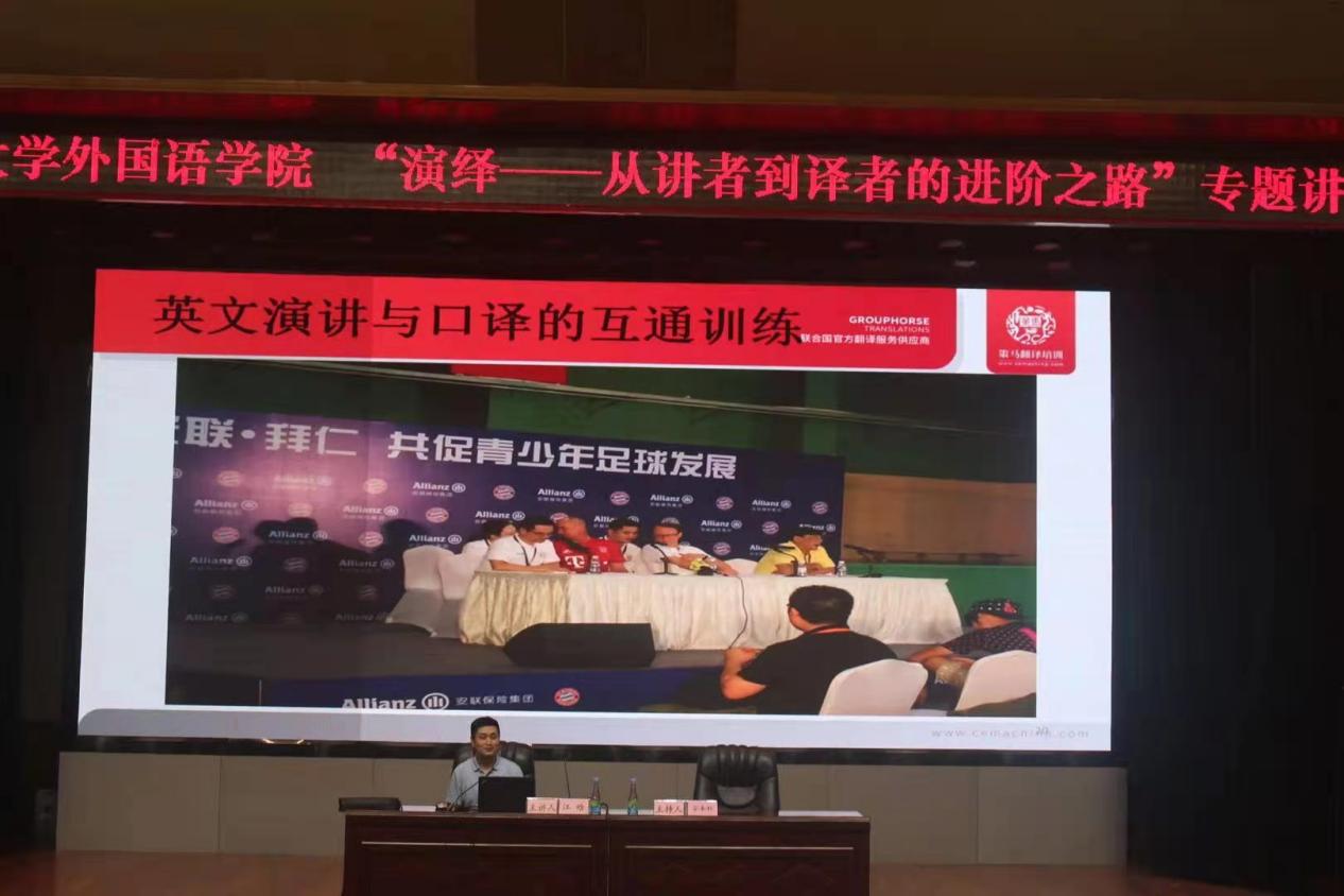 5月24日晚上7:00,在湖光校区主楼多功能厅,来自策马翻译有限公司翻译独家译训师、翻译总监江晗副教授,做了题为《演绎--从讲者到译者的进阶之路》为主题的专题讲座,学院副院长安丰科博士主持讲座,WilliamHill威廉二年级学生和英语专业三年级学生共计约500人参加本次讲座。