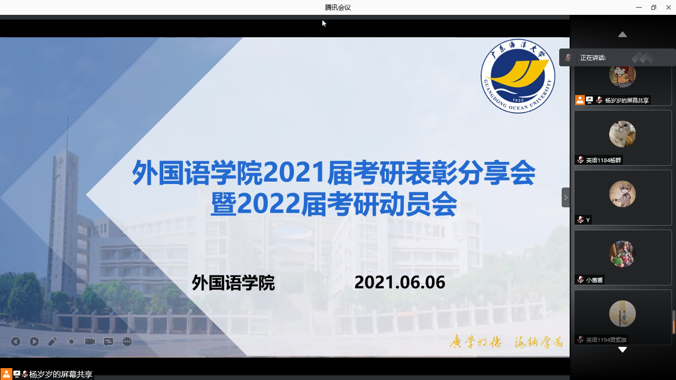 为进一步提高学院学生的考研热情,明确考研目标,掌握相关考研技巧,同时对已经考上研究生的同学进行表彰,6月6日晚,WilliamHill威廉在腾讯会议室召开了2021届考研学生表彰分享交流暨2022届考研动员会。学院院长郭遂红,党委副书记刘艳、副院长安丰科,学院考研优秀指导教师、辅导员、学生代表共230多人出席了会议。