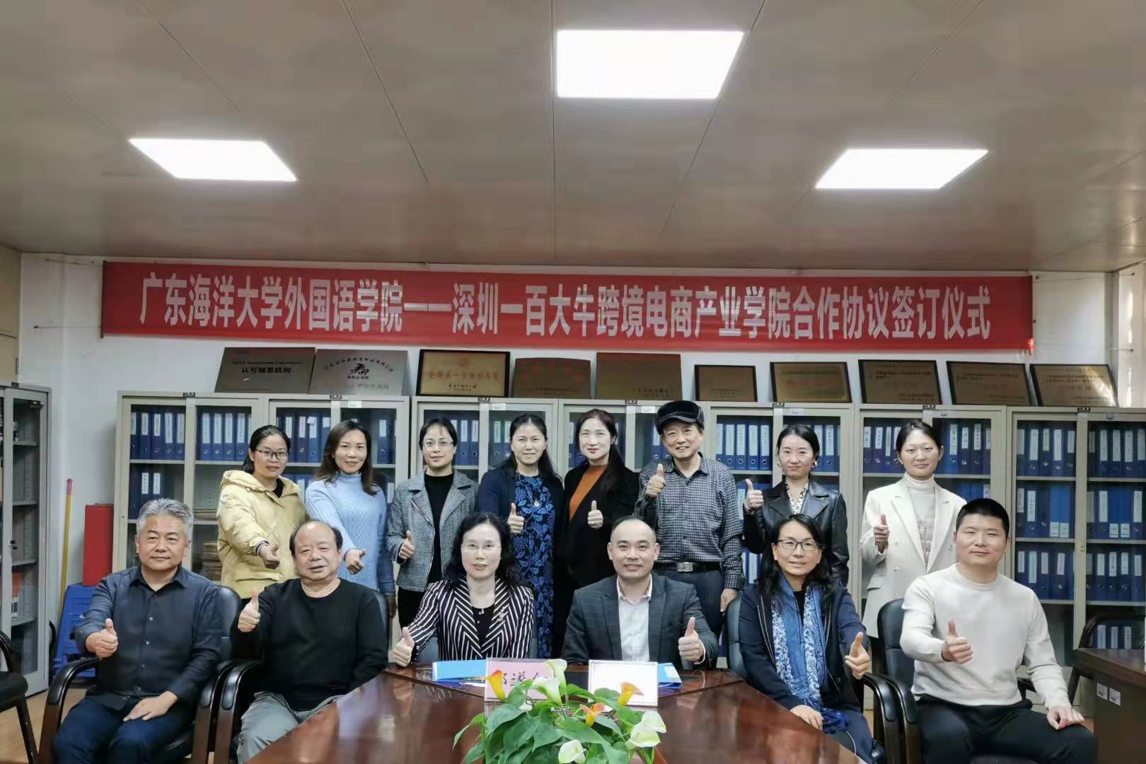 1月3日,WilliamHill威廉在湖光校区兴教楼105举行了“WilliamHill威廉-深圳一百大牛跨境电商产业学院合作协议”签订仪式。WilliamHill威廉院长郭遂红教授、一百大牛(深圳)技术有限公司CEO赵国庆先生分别代表双方在协议书上签字。学院领导正处级辅导员刘艳副书记、何谦卫副院长、安丰科副院长、语言实训中心正副主任,英语系副主任,党政办公室主任,负责跨境电商实践课程教师和一百大牛(深圳)技术有限公司粤西片区李威总经理、校企合作总监奉雪梅等人参加活动。