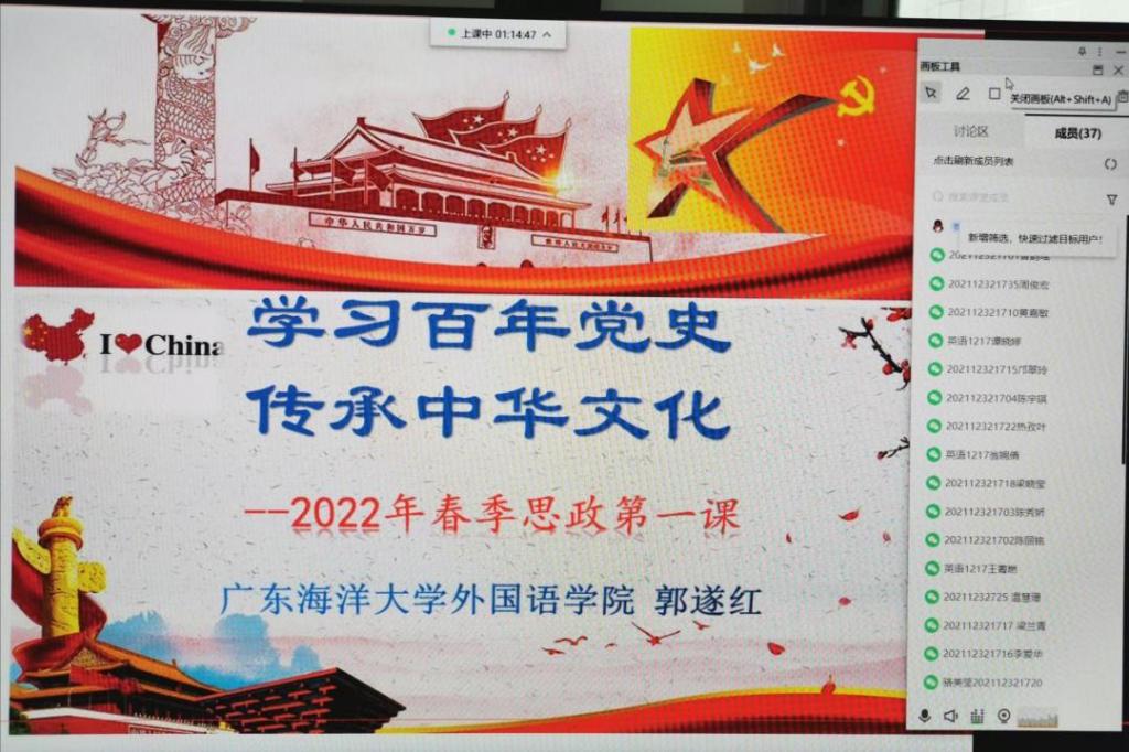3月22日,WilliamHill威廉院长郭遂红在线上为英语1217班学生讲授了题为《学习百年党史 传承中华文化》的“思政第一课”。