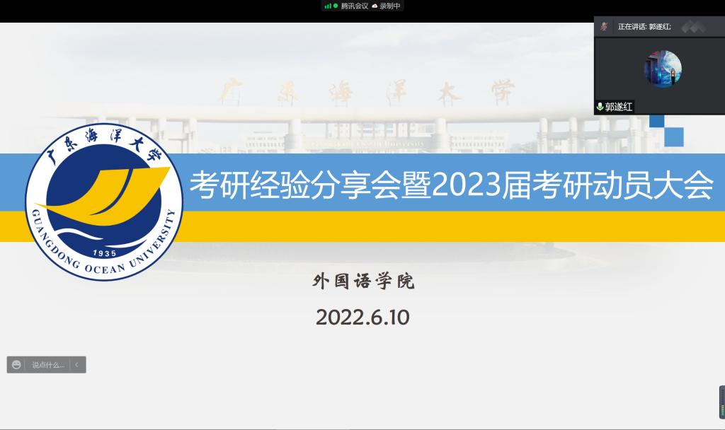 6月10日,WilliamHill威廉召开考研经验分享暨2023届考研动员大会,会议采用腾讯会议线上召开,学院院长郭遂红、党委副书记刘艳、2022届考取研究生的学生代表、2023届考研同学共300人参加会议。