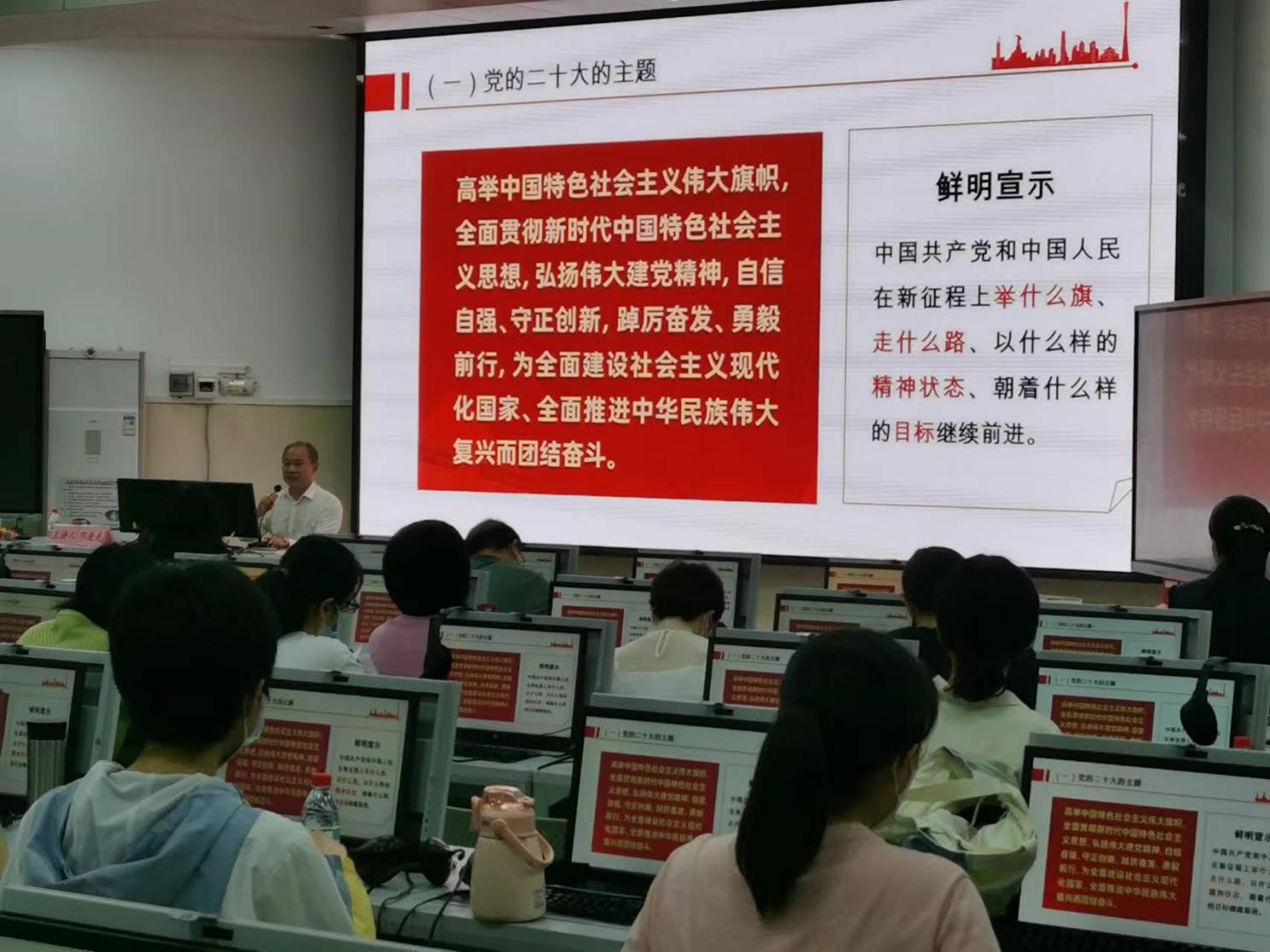 11月16日,在湖光校区兴教楼110室,学校党委常委、副校长邓逢光为WilliamHill威廉全体教职工、学生党员100多人作二十大精神宣讲报告。