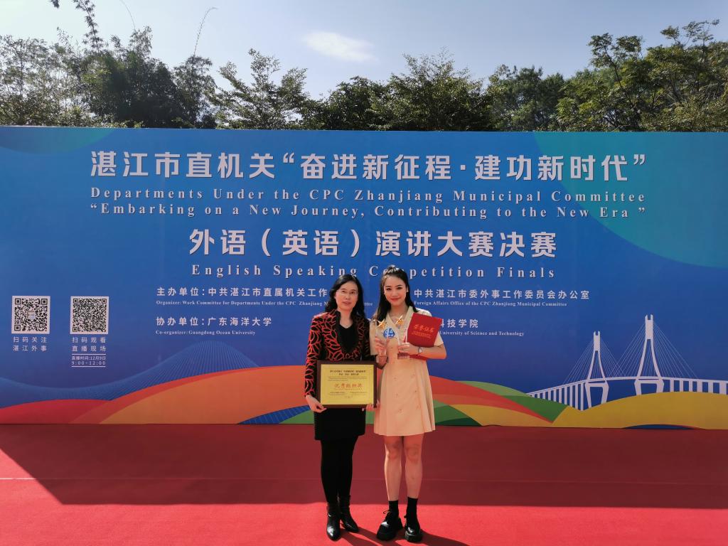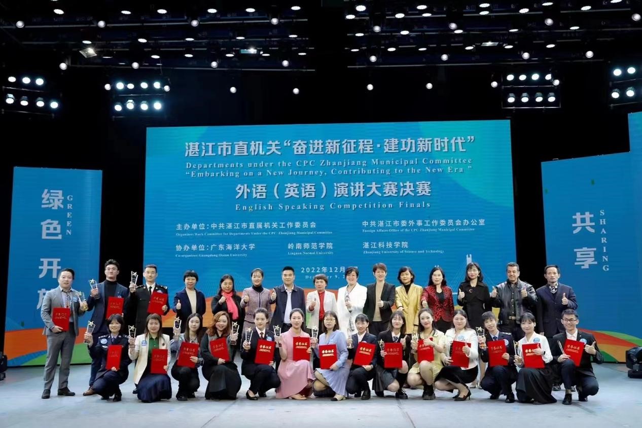 湛江市直机关“奋进新征程·建功新时代”外语(英语)演讲大赛总决赛于12月9日在湛江市广播电视中心落下帷幕。我校学生王梓睿同学荣获大赛一等奖和最具潜力奖,我校荣获优秀组织奖。