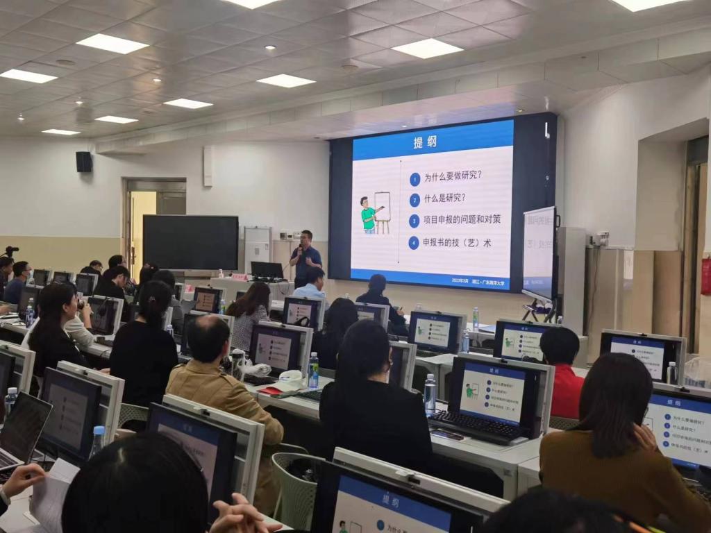 下午3:30,在湖光校区兴教楼110,学院全体教师参加了第一场讲座,正处级辅导员、党委副书记刘艳主持。吴庄教授以《外语教学科研项目申报的策略与方法》为题,从外语教师为什么要做研究、什么是研究、项目申报的难点和对策、申报书的技术与艺术等四方面,以个人申报书为例,结合个人申报和评审国家社会科学基金项目的心得体会,为我院教师申报项目出谋划策,并分享了广东外语外贸大学做有组织的科研的具体举措,为我院科研的高质量发展提供了借鉴。讲座高屋建瓴,既有理论深度,又有极强的可操作性。