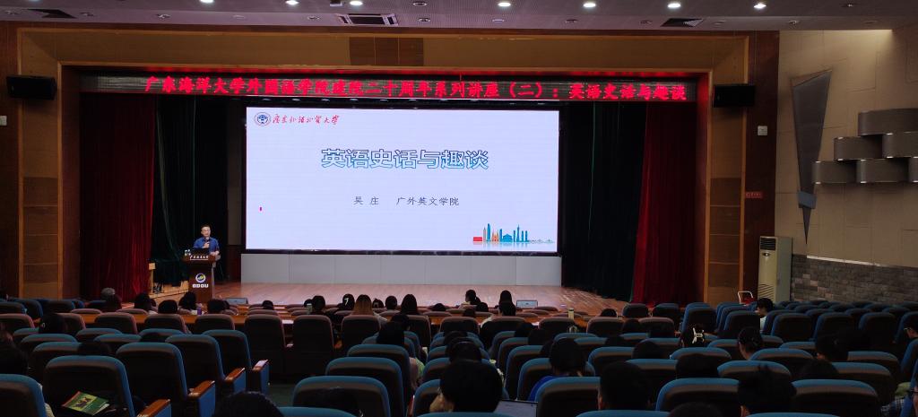 晚上7:30,在湖光校区广学楼多功能厅,吴庄教授以《英语史话与趣谈》为题,为英语专业1-3年级的学生做了第二场讲座,副院长安丰科主持。吴庄教授以中国历史为依托,从历史语言学的视角深入浅出地阐述了英语的发展史和当前英语特点的形成动因。讲座内容丰富、博古通今、逻辑清晰。吴庄教授扎实的语言文化功底,让学生在通晓英语发展史的同时,又接受了一场中国语言文化的洗礼。讲座现场气氛热烈,师生互动频繁。