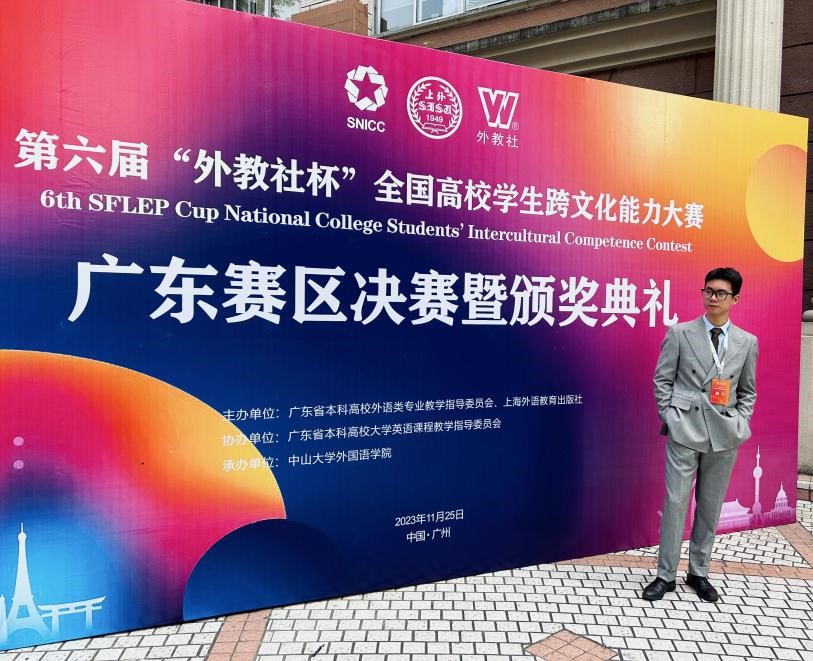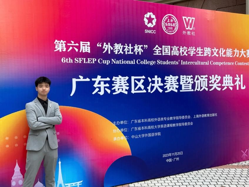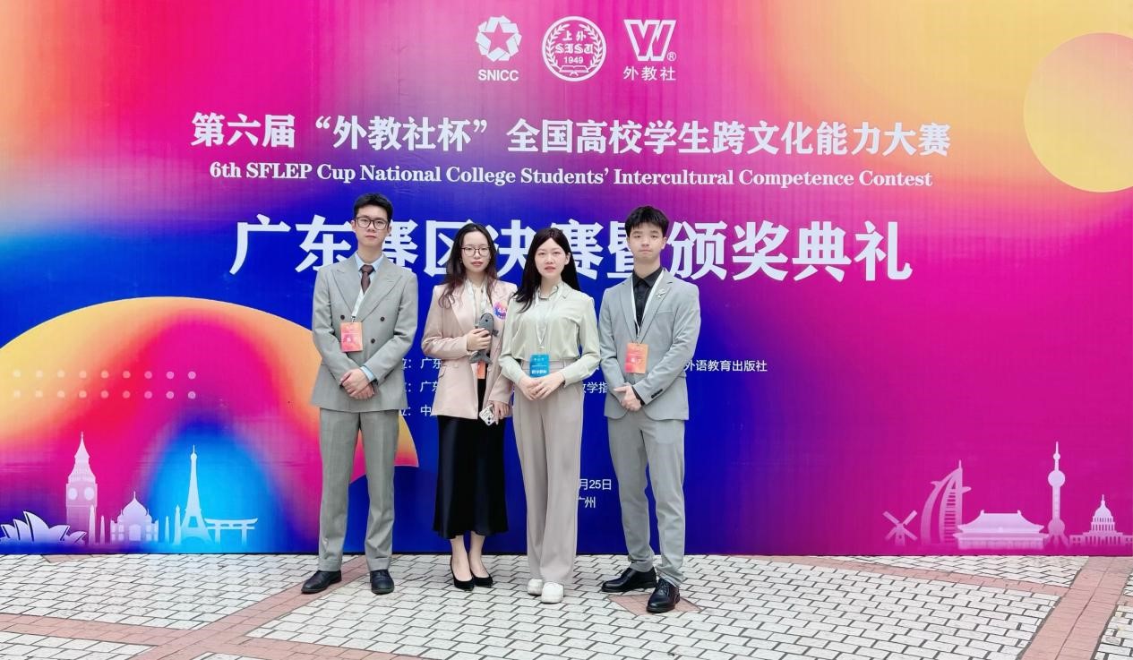 第六届“外教社杯”全国高校学生跨文化能力大赛(广东省赛区)于11月25日在中山大学南校区落下帷幕。此次比赛共有300多位选手和指导老师参赛。我校刘嘉巍、张学儒、李天力三位同学组成的威廉中国代表队,在杨青、陈元骊、何含果三位老师的共同指导下,经过省复赛与来自全省各重点本科院校选手的激烈角逐,在总决赛凭借出色表现荣获一等奖。“外教社杯”全国高校学生跨文化能力大赛旨在为全国高校师生提供一个展示跨文化交流能力、交流跨文化教学经验的平台,是我国特色鲜明的一流学生赛事平台,2023年被纳入“全国普通高校大学生竞赛榜单”,是外语类学科竞赛的最具权威三大赛事之一。本届大赛由上海外国语大学主办,湖南师范大学协办、上海外语教育出版社承办,秉承以“坚定文化自信、增进国际理解”这一主题,将语言教学与跨文化教育有机结合,提高新时代大学生跨文化意识、跨文化能力,增强国际理解,促进国际交流。