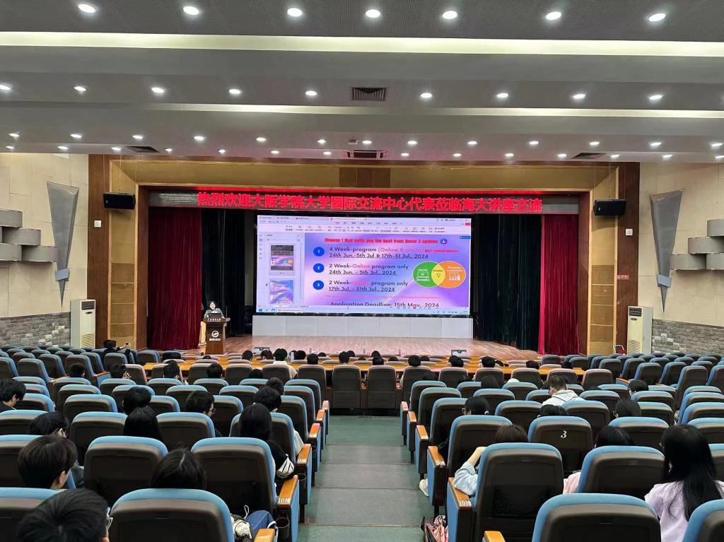 座谈结束后,来访代表孟涛一行移步广学楼多功能厅为日语系学生详细介绍大阪学院大学的寒暑期短期交流项目、交换生项目、联合培养项目,及生活资助、奖助学金的相关情况,并耐心细致地解答了同学们的疑问。