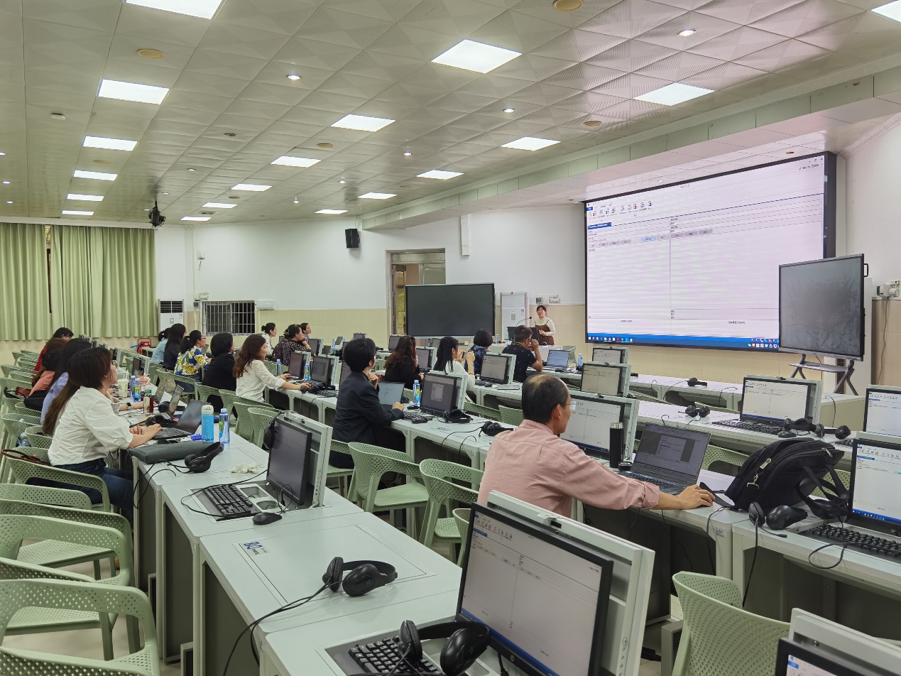来自广州市迈尼科技有限公司的苏婷婷经理和戴钰涵老师以一份合同翻译为例,详细讲解并实际演示了如何利用“迪佳悟”软件新建翻译项目、翻译记忆库和术语库,以及如何调用在线翻译系统或插件如“百度翻译”、“My Memory”等进行辅助翻译。老师们跟随着讲解一步步认真操作,并对遇到的疑难问题及时与培训老师积极沟通交流,现场学习气氛异常热烈。