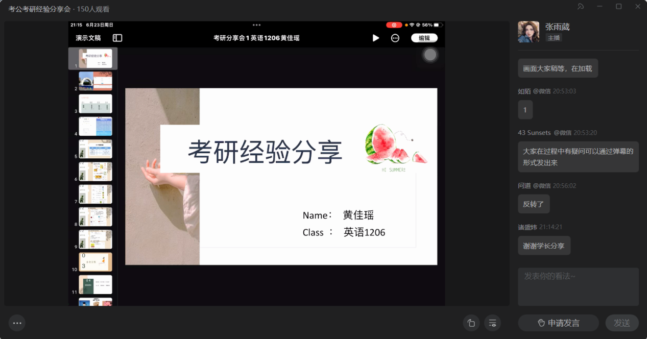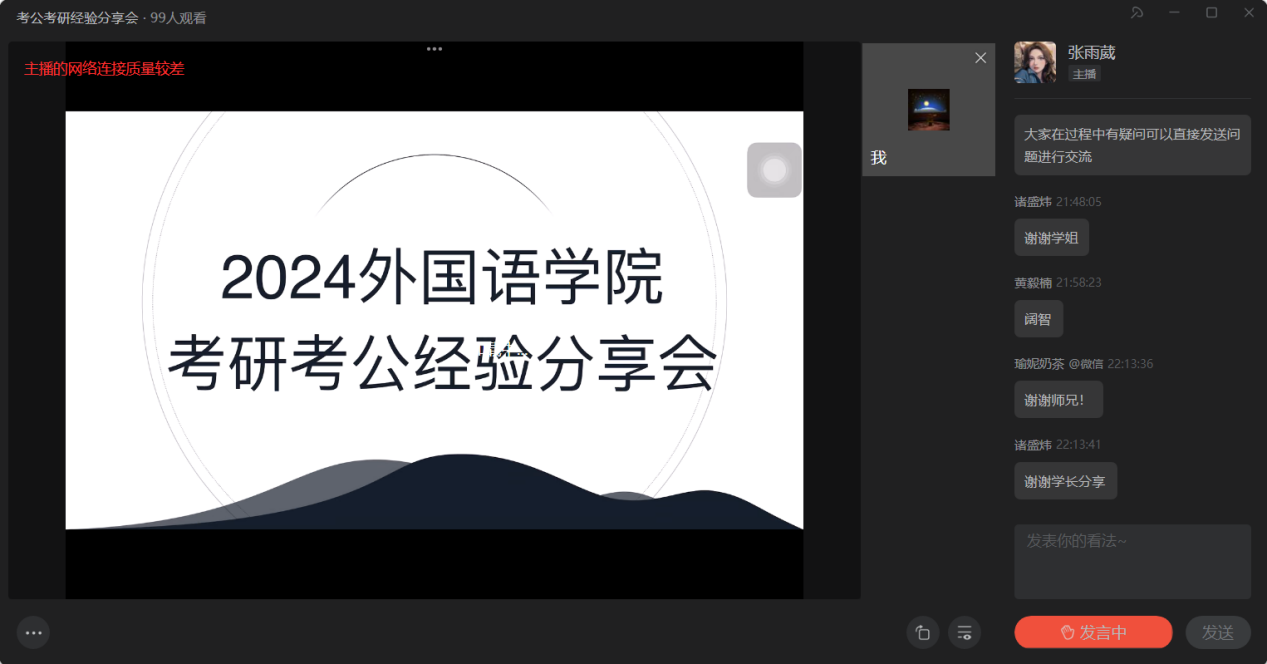 2024年6月23日,WilliamHill威廉在线上召开考公考研经验分享会,学院党委副书记李明焜、辅导员代表、2024届考取公务员与研究生的学生代表及WilliamHill威廉预备考公考研学生参与本次活动。本次活动旨在为广大考公、考研学子提供一个交流学习、分享经验的平台,帮助他们更好地备考,实现人生梦想。