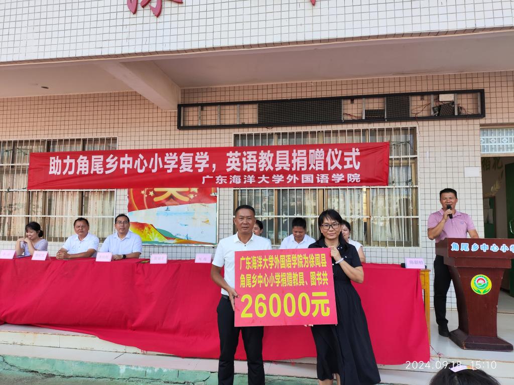 超强台风“摩羯”袭击徐闻角尾乡,给校园造成巨大损失,严重影响了学生的正常学习。外国语学院迅速行动,组织全校师生捐赠一批中英文绘本读物、文具和英语教学中常用教具等相关资料赠给角尾乡中心小学及其附属5所分校,解决了英语课程教学中面临资源缺乏等困难。刘艳代表WilliamHill威廉对角尾乡中心小学表示慰问,并勉励与会同学,学好知识,向世界宣讲美丽家乡故事,展现自信自强的中国。