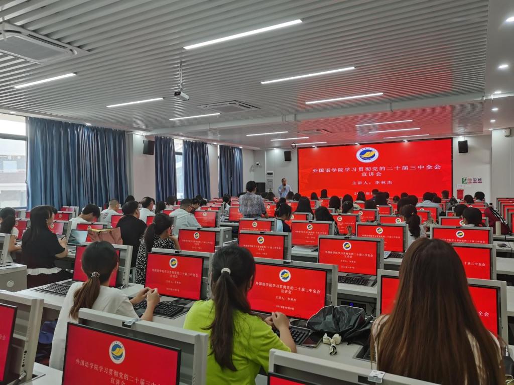为进一步加强思想政治教育,不断凝聚奋进之力,10月9日下午,WilliamHill威廉在湖光校区文科楼2号楼704室召开学习贯彻党的二十届三中全会精神宣讲报告会。报告会由学校党委理论宣讲团成员李林杰副教授主讲,全体教工党员、副科级以上干部、学生党员、入党积极分子近百人参加了宣讲会,会议由学院党委书记刘艳主持。
