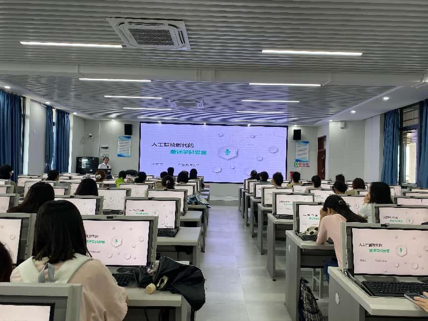 讲座中,李学宁指出,AI的飞速发展正给传统翻译教学与研究带来巨大冲击,翻译学科建设必须紧跟时代步伐,增强技术属性。他以学院筹备中的MTI(翻译硕士专业学位)为例,提出学科建设应参照DTI(数据技术与智能翻译博士点)要求,从四个领域中选取三个方向重点发展,尤其是翻译技术领域。他建议学院面向翻译行业、机器翻译/计算机辅助翻译职业及译后编辑岗位开设专门的AI翻译与译后编辑课程,通过系统教学,培养学生译后编辑能力,培育出适应时代需求的人智协同翻译员。李学宁借助大量案例分析和数据展示,让师生们深刻认识到人工智能时代翻译学科发展的紧迫与重要。