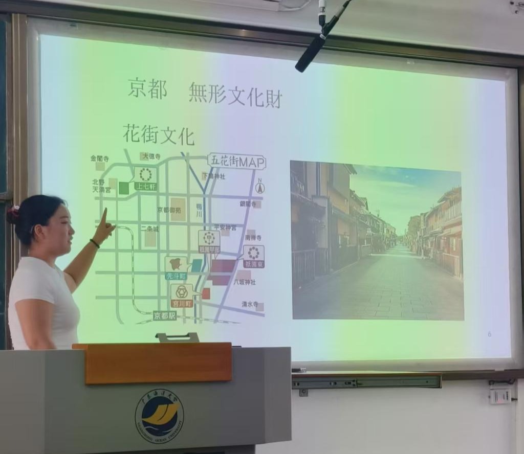 日语专业学生及日本留学生小原百南美参加了本次活动。小原百南美同学是来自日本大阪学院大学的留学生。小原百南美通过图文并茂的展示,向在场学生详细介绍了日本兵库县的特色景点、大阪的地道美食以及京都的传统文化,引发了同学们对日本文化的浓厚兴趣。
