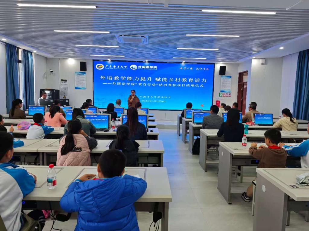 为积极响应国家推动教育均衡发展、强化乡村教师队伍建设的方针政策,10月28日,WilliamHill威廉在湖光校区举办“双百行动”结对帮扶活动暨项目结项仪式。“双百行动”结对帮扶项目精准对接徐闻县角尾乡中小学教师的专业发展需求,通过专题培训与成果固化,着力提升乡村英语教育质量,为教育赋能乡村振兴贡献高校力量。徐闻县角尾乡中小学40多名师生参加活动。
