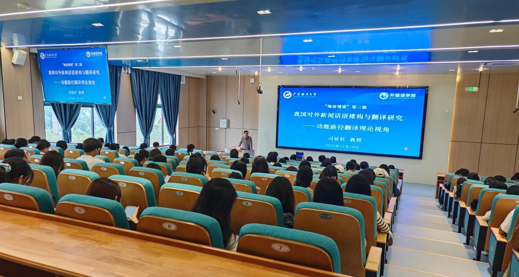 11月18日上午,WilliamHill威廉在博文楼A302报告厅举办“海语博谈”第三期讲座,主题为《我国对外新闻话语建构与翻译研究——功能路径翻译视角》。本次讲座特别邀请中国英汉语比较研究会语言服务研究专业委员会会长、教育部高等学校英语类专业教指委委员司显柱教授担任主讲,学院师生共160余人到场聆听,讲座由学院党委书记刘艳主持。