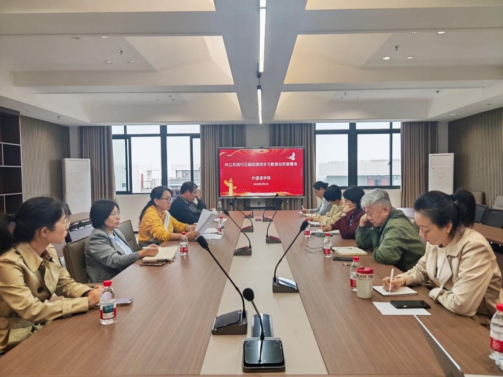 会议要求,要统筹推进学习教育与学院中心工作,进一步推动学院高质量发展。一是提高政治站位,筑牢思想根基。深刻认识开展学习教育的重大政治意义、实践意义,把思想和行动统一到党中央决策部署及上级工作要求上来,以高度的政治自觉、思想自觉、行动自觉抓好学习教育。二是紧扣目标主题,狠抓任务落实。严格落实“立党为公、为民造福、科学决策、真抓实干”的总要求,以“一体推进学查改”为抓手,扎实开展学习研讨,深入查摆问题,狠抓整改整治,引导党员干部树牢正确政绩观、事业观,以实干担当推动学院各项工作落地见效。三是做好结合文章,推动成果转化。把学习教育与学院“十五五”规划、翻译硕士点申报等中心工作紧密结合,把学习成效转化为谋划工作的新思路、破解难题的新举措、推动发展的新成效,以高质量党建引领学院事业高质量发展。