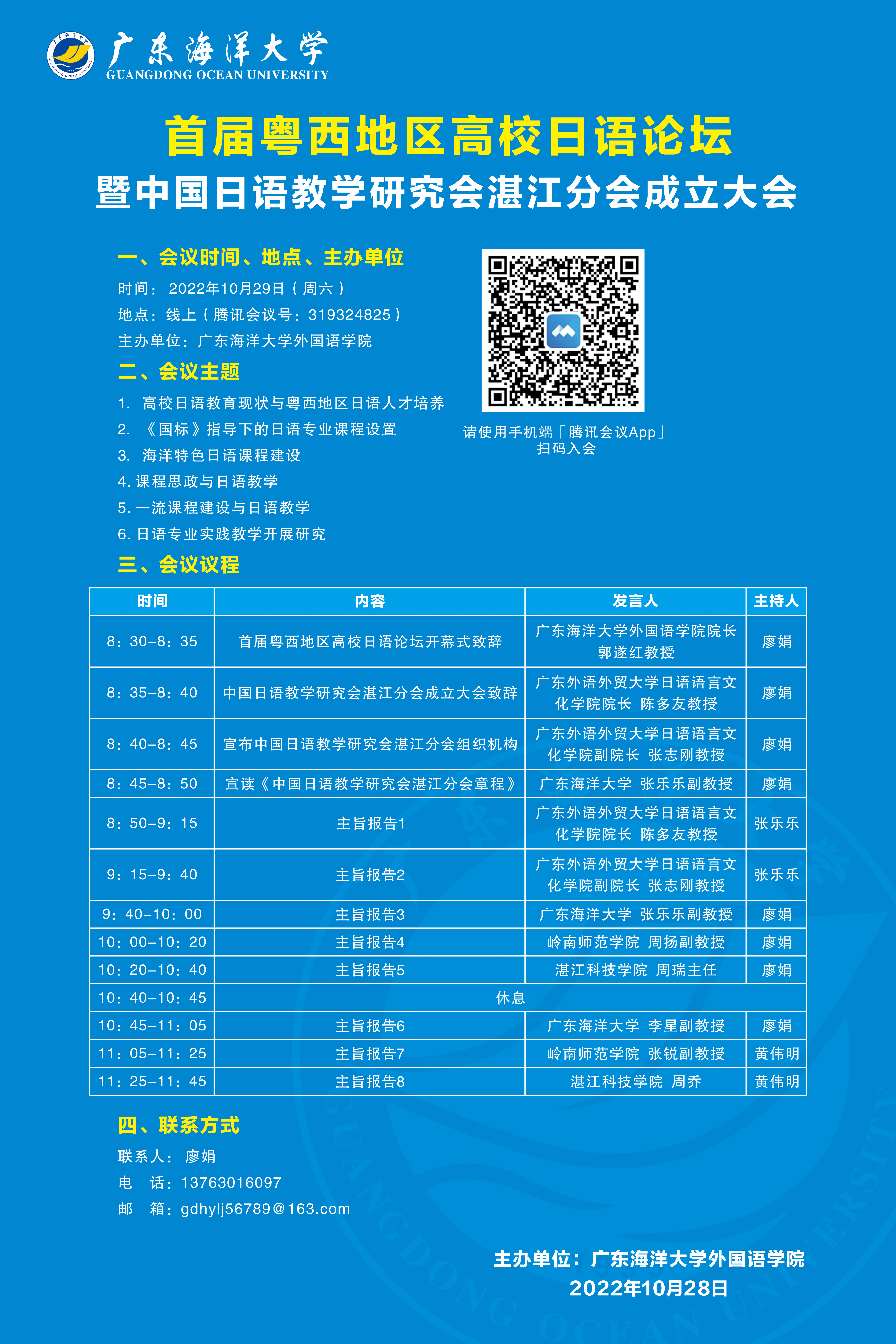 首届粤西地区高校日语论坛暨中国日语教学研究会湛江分会成立大会