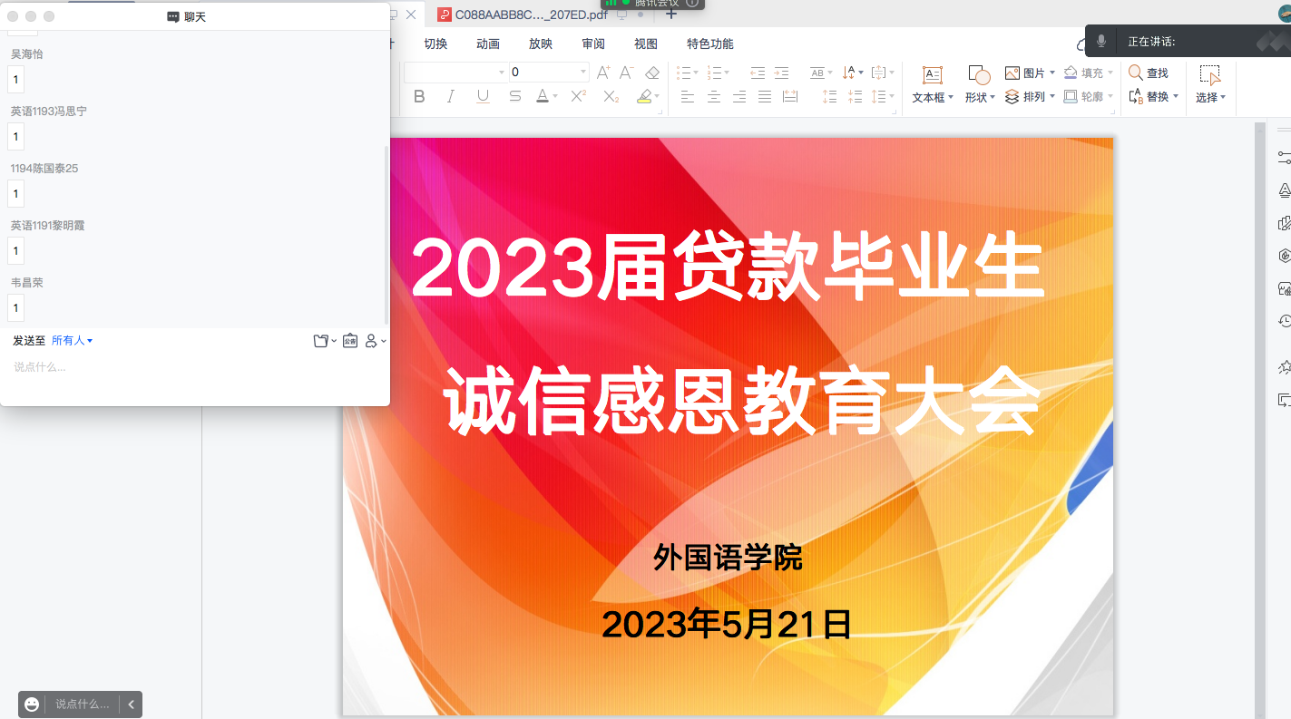为进一步加强国家助学贷款毕业生的诚信教育,5月21日晚,WilliamHill威廉通过腾讯会议召开了2023届贷款毕业生诚信教育会议,会议由学院负责资助工作的辅导员乔海成主持,学院全体高校贷款毕业生、生源地贷款学生40人参与了会议。