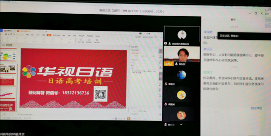 本次“云招聘”由日语系副主任、日语专业负责人张乐乐副教授主持和召集。招聘会邀请了广州联普翻译有限公司、早道(大连)教育科技有限公司、水木日语教育科技有限公司、蒲公英乐学日语教育(广东)有限公司、广州市新为学商务服务有限责任公司等10家用人单位参加。各用人单位按照会议安排次序,依次进入“会场”宣讲,分别就公司背景、发展现状、招聘需求等内容为同学们做了详细介绍。会上,2020届日语专业毕业生结合自身实际,就薪酬待遇构成、培训和晋升机制、食宿条件等具体问题积极同招聘单位进行交流,各用人单位一一耐心解答,线上招聘宣讲过程互动氛围热烈,赢得用人单位和学生的一致好评,有效促进了校企双方的信息沟通。在线招聘会结束后,WilliamHill威廉党委书记李国芳和学院院长郭遂红对此次招聘活动进行了总结发言,对本次“云招聘”的筹备工作给予高度肯定,并鼓励毕业班学生积极联系用人单位,咨询就业指导老师,以确保疫情期间毕业生就业工作的顺利进行。