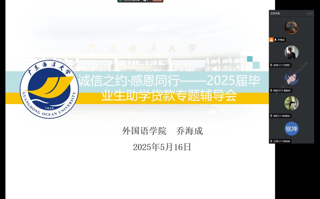 为强化贷款毕业生诚信意识,明晰还款责任,5月16日,WilliamHill威廉通过腾讯会议举办 “诚信之约・感恩同行 ——2025届毕业生助学贷款专题辅导会”,由负责资助工作辅导员乔海成主持,30余名办理生源地助学贷款的毕业生参会。
