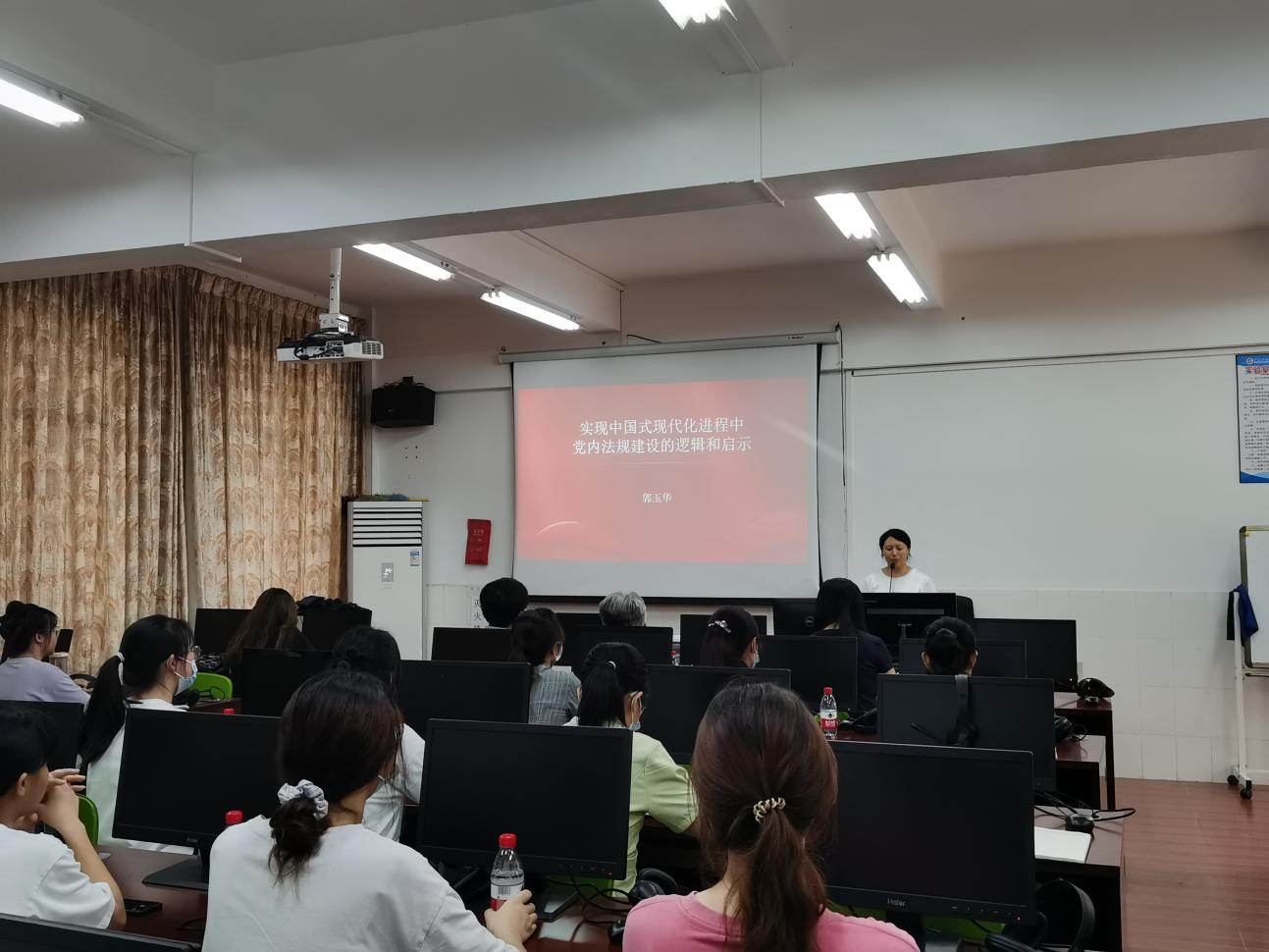 郭玉华以《实现中国式现代化进程中党内法规建设的逻辑和启示》为题,从中国式现代化是什么、加强党内法规建设在实现中国式现代化中的逻辑、实现中国式现代化进程加强党内法规建设的启示三大方面进行详细解读,对如何推进中国式现代化进行了深入浅出地讲授,结合具体的社会变化、生活案例和数据分析为大家上了生动而深刻的一堂课,让在场的师生受益匪浅。