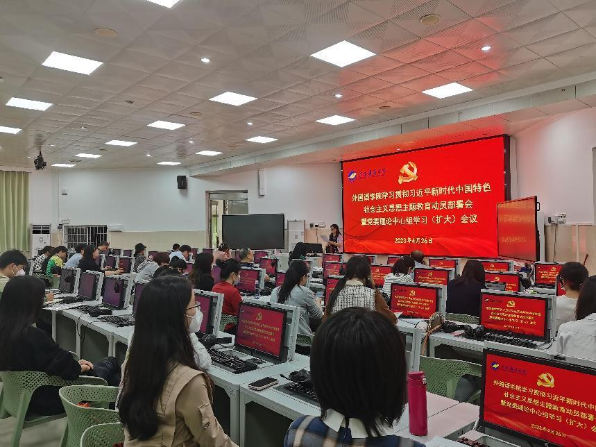 4月26日,WilliamHill威廉在湖光校区兴教楼110召开学习贯彻习近平新时代中国特色社会主义思想主题教育动员部署会暨党委理论学习中心组(扩大)会议,学院领导、副科级以上干部、全体师生党员参加。会议由正处级辅导员、党委副书记刘艳主持。
