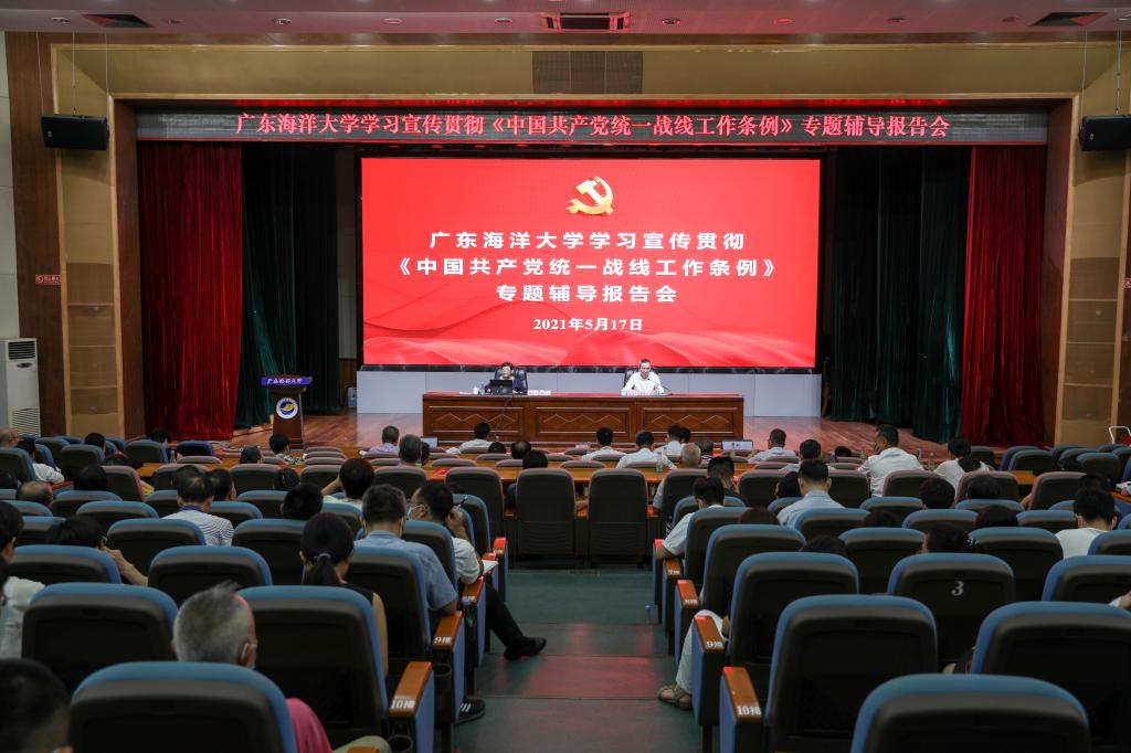 5月17日上午,学校在湖光校区教学主楼多功能厅召开2021年统战工作会议暨学习贯彻《中国共产党统一战线工作条例》专题辅导报告会。学校党委书记曹俊明,党委副书记、统战部部长林晓敏,党委常委、组织部长林宇出席会议。学校统一战线工作领导小组各成员单位主要负责人,各二级党组织书记、副书记,各民主党派、知联会全体成员,专职辅导员,党委办公室和学生工作部全体人员参加会议。